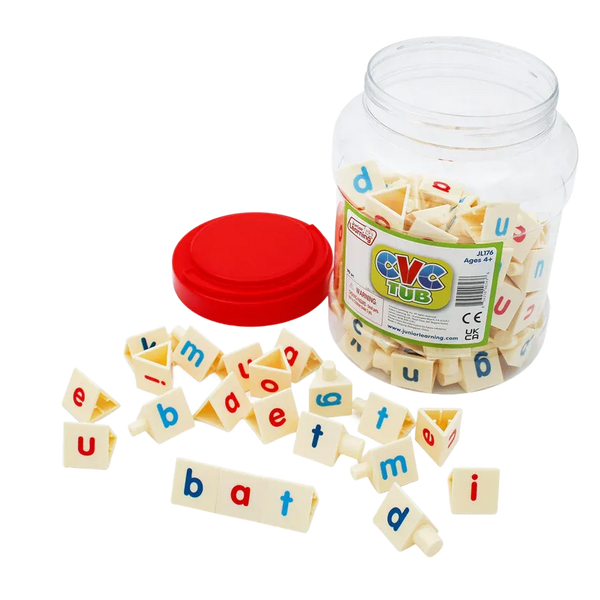 Build words with your Tri-Blocks® and learn consonants and short vowels (CVC).Turn each block and manipulate the middle vowel sound or change a spelling with a consonant. Tri-Blocks® let children know spelling rules by their color coding and unique block orientations. Also, for use with CVC Builder and Word Builder box card sets (sold separately). Teach phonemic awareness, word building and spelling. Tub contains 90 x Tri-Blocks®. Ages 5-8, Grades K-3.