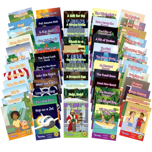 Each book phase has been written specifically for the progression of Letters and Sounds, and these readers will follow students week-by-week through the program, providing them with text-based context to practice their emerging reading skills. Every story has been written with strictly controlled text so that students are only exposed to those letter sounds they previously learned. Furthermore, tricky words are only included after they have been introduced, building confidence in older, struggling readers as they master the phonics code. The books can also be used alongside other popular schemes, as book-banded reading levels are provided. The Boxed Library includes 60 different reader titles, with 12 at each Phase level.