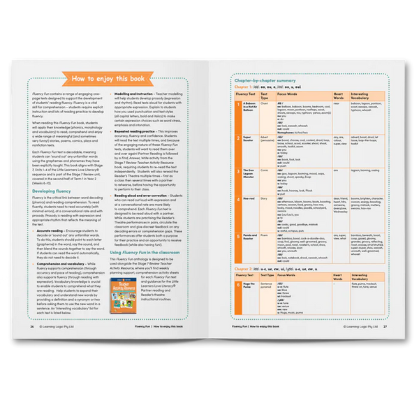 This Fluency Fun anthology is designed to be used alongside the Stage 7 Review Teacher Activity Resource, where you’ll find weekly planning support, comprehension activity sheets for each Fluency Fun text, and guidance for the Little Learners Love Literacy partner reading and reader’s theatre instructional routines.