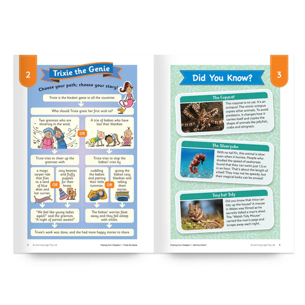 Fluency (accuracy, rate and prosody) is a vital skill for comprehension and enjoyment of reading. Explicit instruction and lots of practice are required. This book contains 20 varied and humorous fluency texts for partner reading and whole-class reader’s theatre, including:
