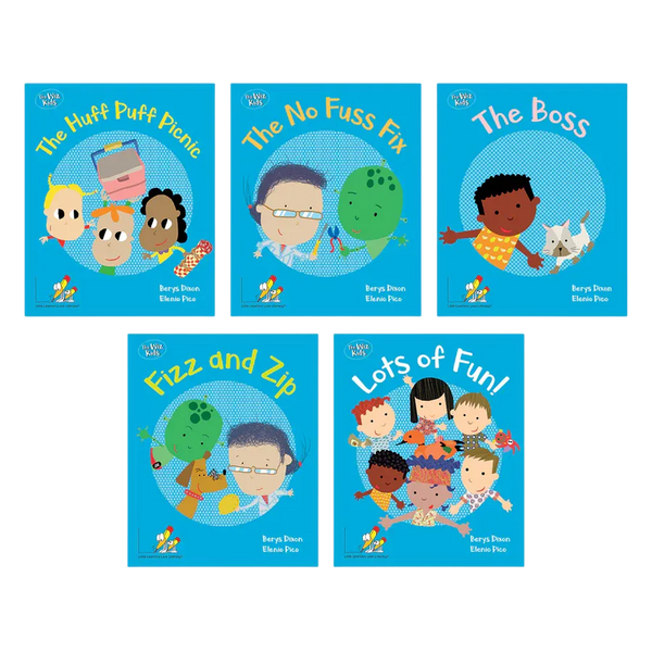 The Wiz Kids books allow children to apply their new skills and knowledge by reading a real story. These decodable books can be used to build fluency, vocabulary knowledge and comprehension, too. Each story is humorous and satisfying, featuring loved characters Pip and Tim.
