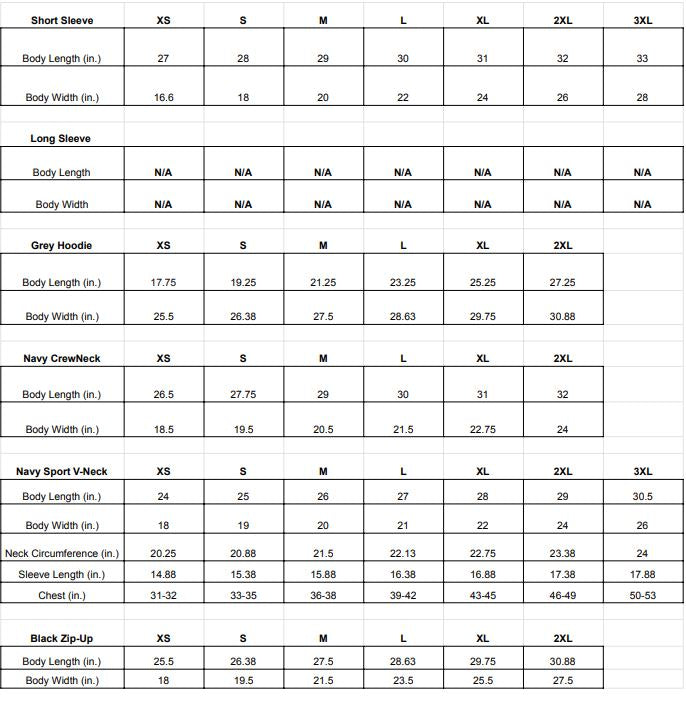 XS, SMALL, MEDIUM, LARGE, XL, 2XL & 3XL
