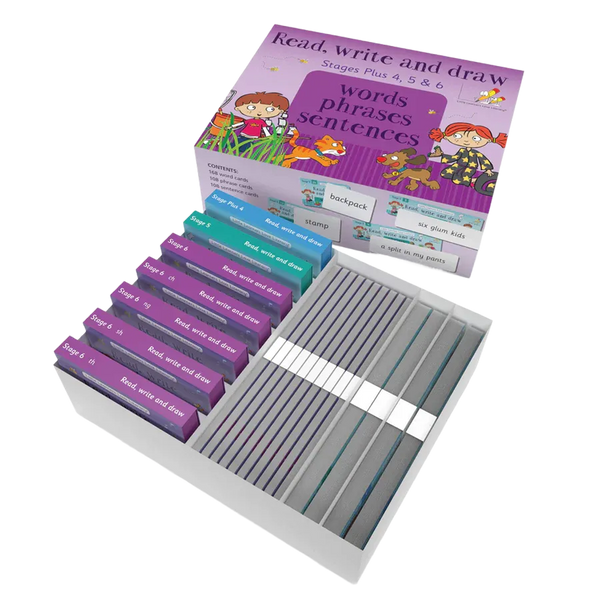 Read, Write and Draw includes word, phrase and sentence cards, which make it quick for teachers to differentiate for children. Designed for easy classroom use, there are 168 word cards packed in separate boxes, 108 phrase cards, and 108 sentence cards ... that’s lots of reading, writing and drawing!